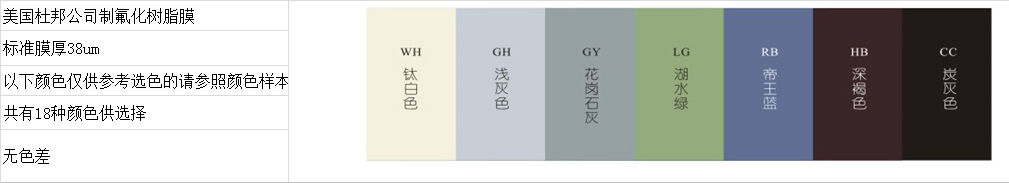 ■ 鍍膜鋼板顏色可選擇范圍